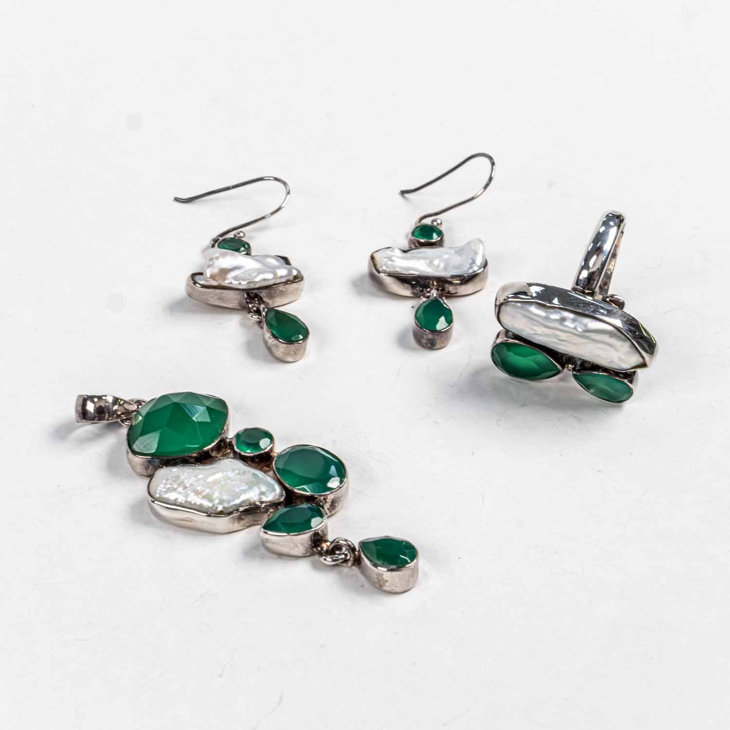 Descopera Set Bijuterii STILL Argint 925 - Pandantiv, Inel, Cercei, Onix Verde si Perla Baroc, Inel Reglabil, Verde, un set de bijuterii din Argint 925 compus din pandantiv, cercei si inel, decorat cu Onix Verde si Perla Baroc, , disponibil la marimea Reglabil, in nuante Verde, perfect pentru a adauga eleganta oricarei tinute.