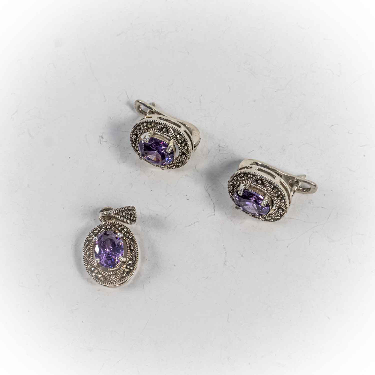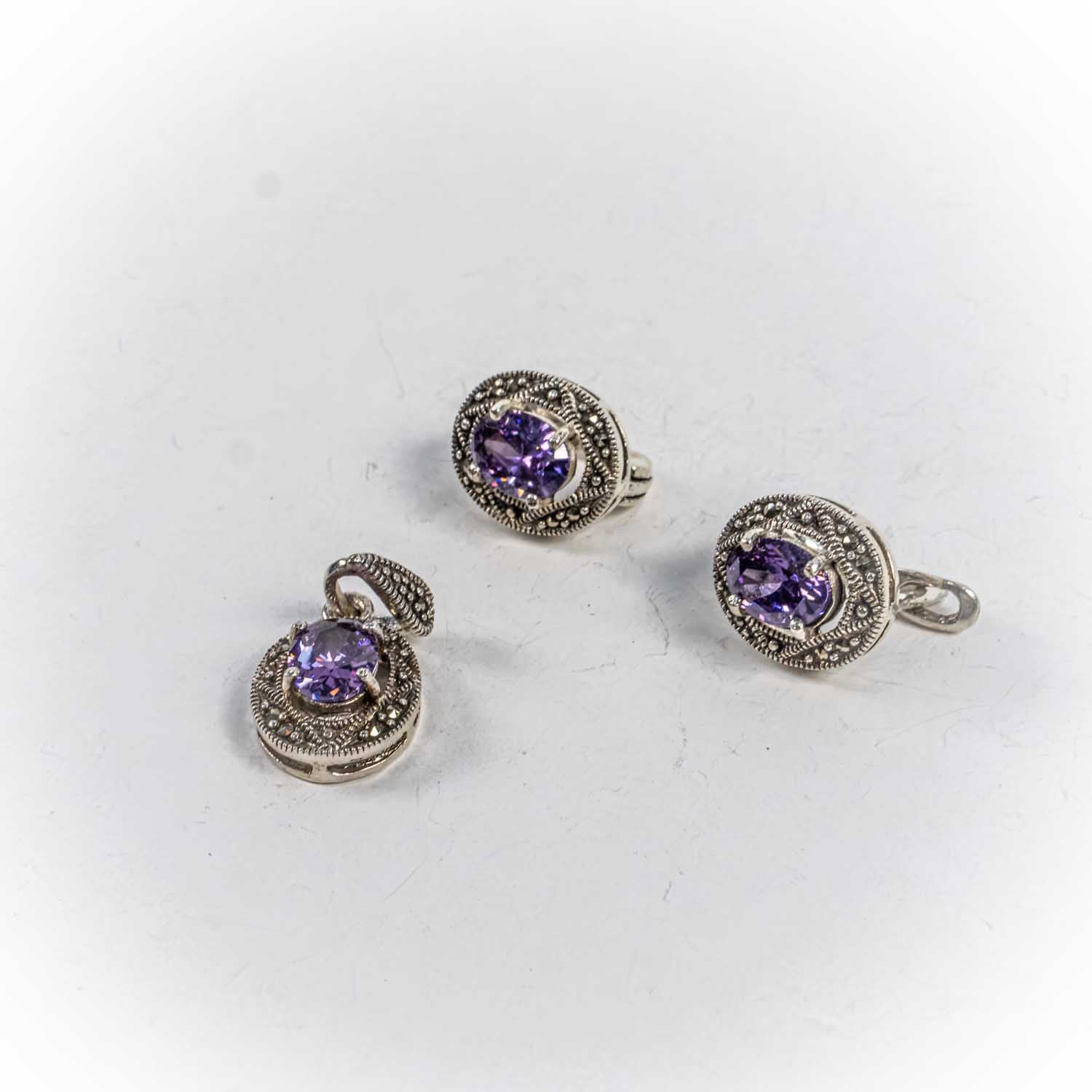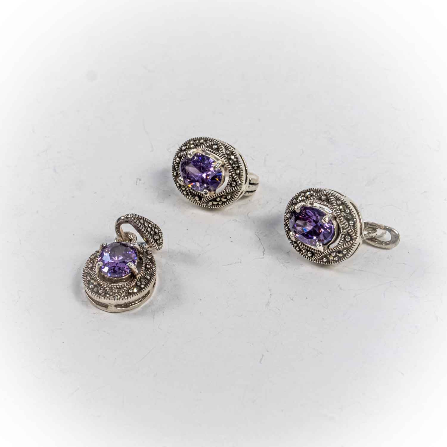 Descopera Set Bijuterii STILL Argint 925 - Pandantiv, Cercei, Ametist si Marcasite, Violet, un set de bijuterii din Argint 925 compus din pandantiv si cercei, decorat cu Ametist si Marcasite, in nuante Violet, perfect pentru a adauga eleganta oricarei tinute.