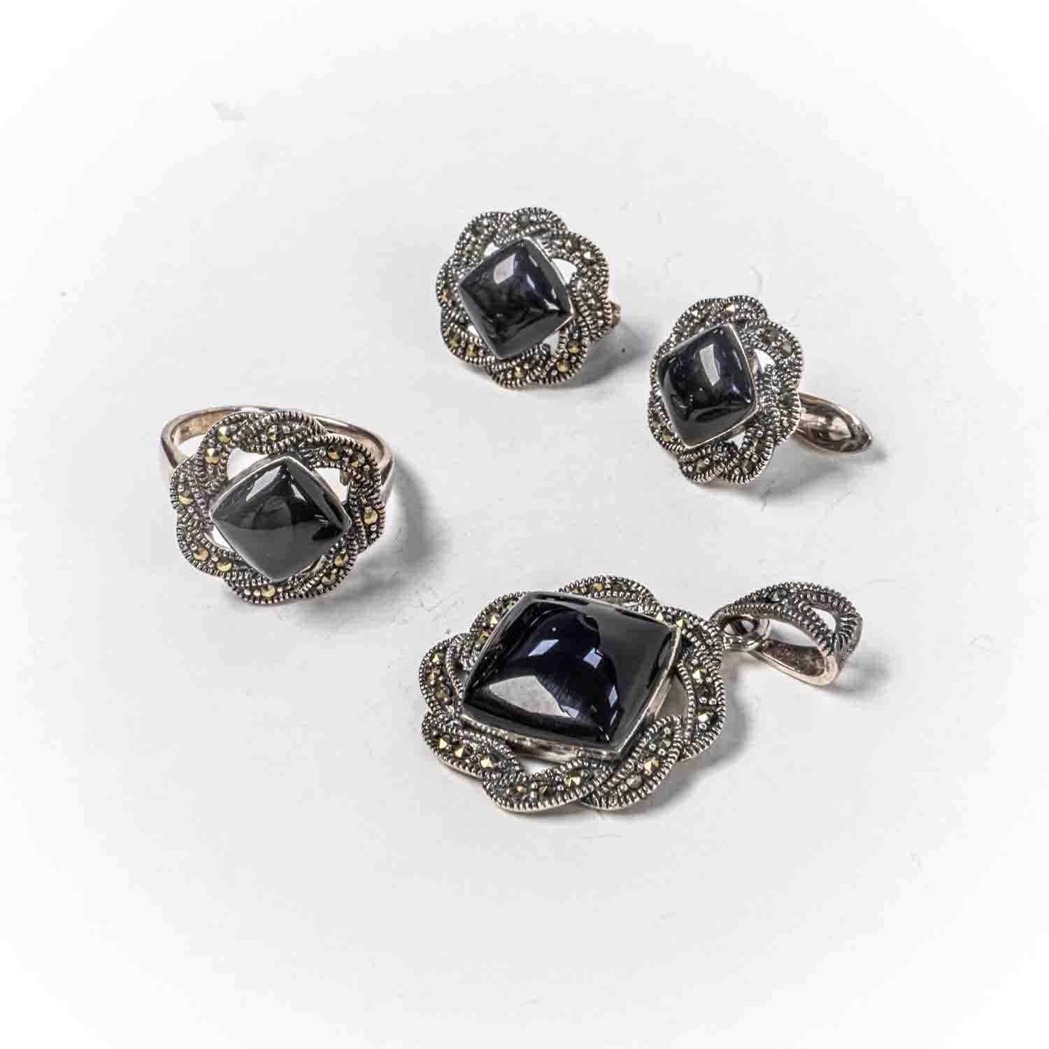 Descopera Set Bijuterii STILL Argint 925 - Pandantiv, Inel, Cercei, Onix si Marcasite, Marime Inel 7, Negru, un set de bijuterii din Argint 925 compus din pandantiv, cercei si inel, decorat cu Onix si Marcasite, , disponibil la marimea 7 in nuante , Negru, perfect pentru a adauga eleganta oricarei tinute.