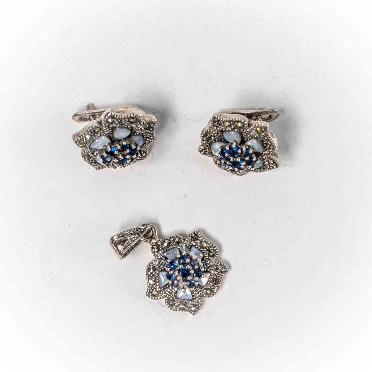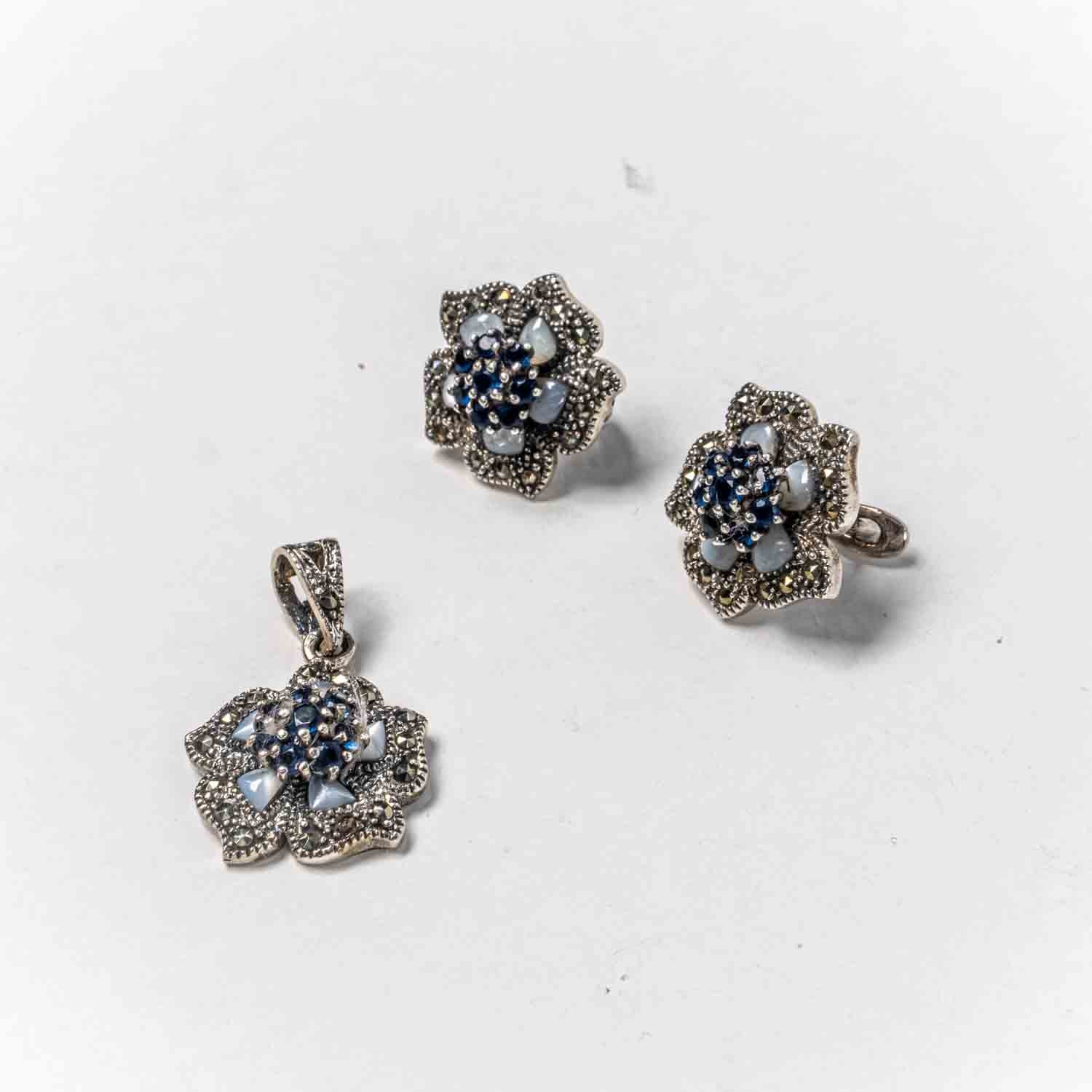 Descopera Set Bijuterii STILL Argint 925 - Pandantiv, Cercei, Zirconia si Marcasite, Albastru, un set de bijuterii din Argint 925 compus din pandantiv si cercei, decorat cu Zirconia si Marcasite, in nuante Albastru, perfect pentru a adauga eleganta oricarei tinute.