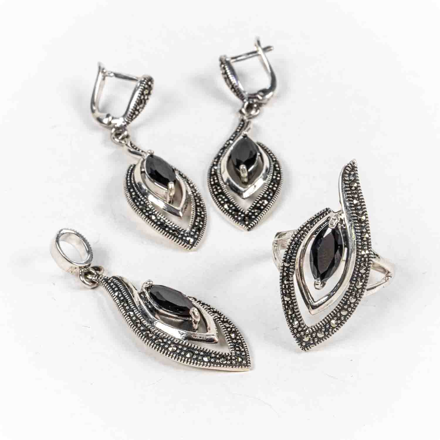 Descopera Set Bijuterii STILL Argint 925 - Pandantiv, Inel, Cercei, Zirconia si Marcasite, Marime Inel 8, Negru, un set de bijuterii din Argint 925 compus din pandantiv, cercei si inel, decorat cu Zirconia si Marcasite, , disponibil la marimea 8 in nuante , Negru, perfect pentru a adauga eleganta oricarei tinute.