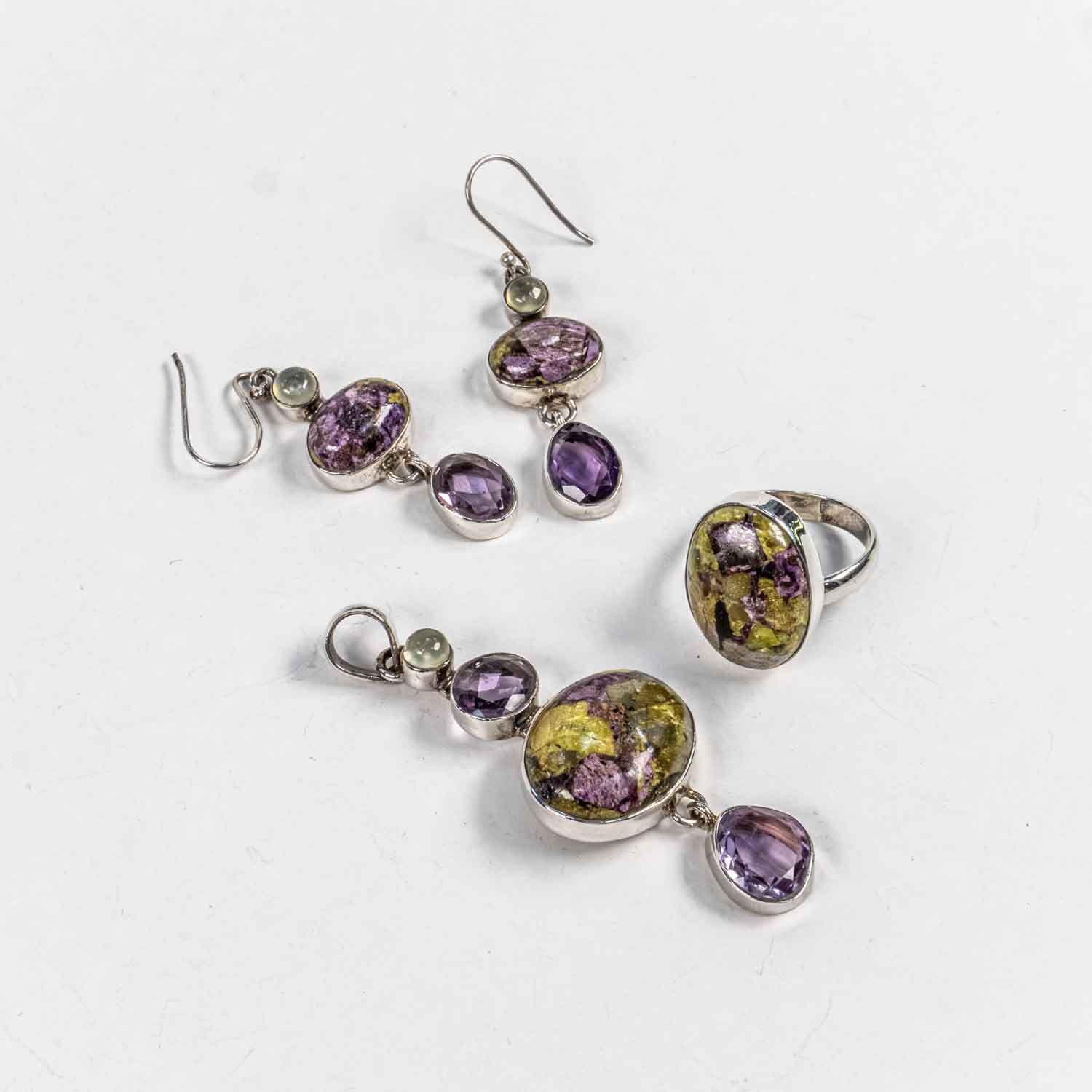 Descopera Set Bijuterii STILL Argint 925 - Pandantiv, Inel, Cercei, Tasmanian si Ametist, Inel Reglabil, Multicolor, un set de bijuterii din Argint 925 compus din pandantiv, cercei si inel, decorat cu Tasmanian si Ametist, , disponibil la marimea Reglabil, in nuante Multicolor, perfect pentru a adauga eleganta oricarei tinute.