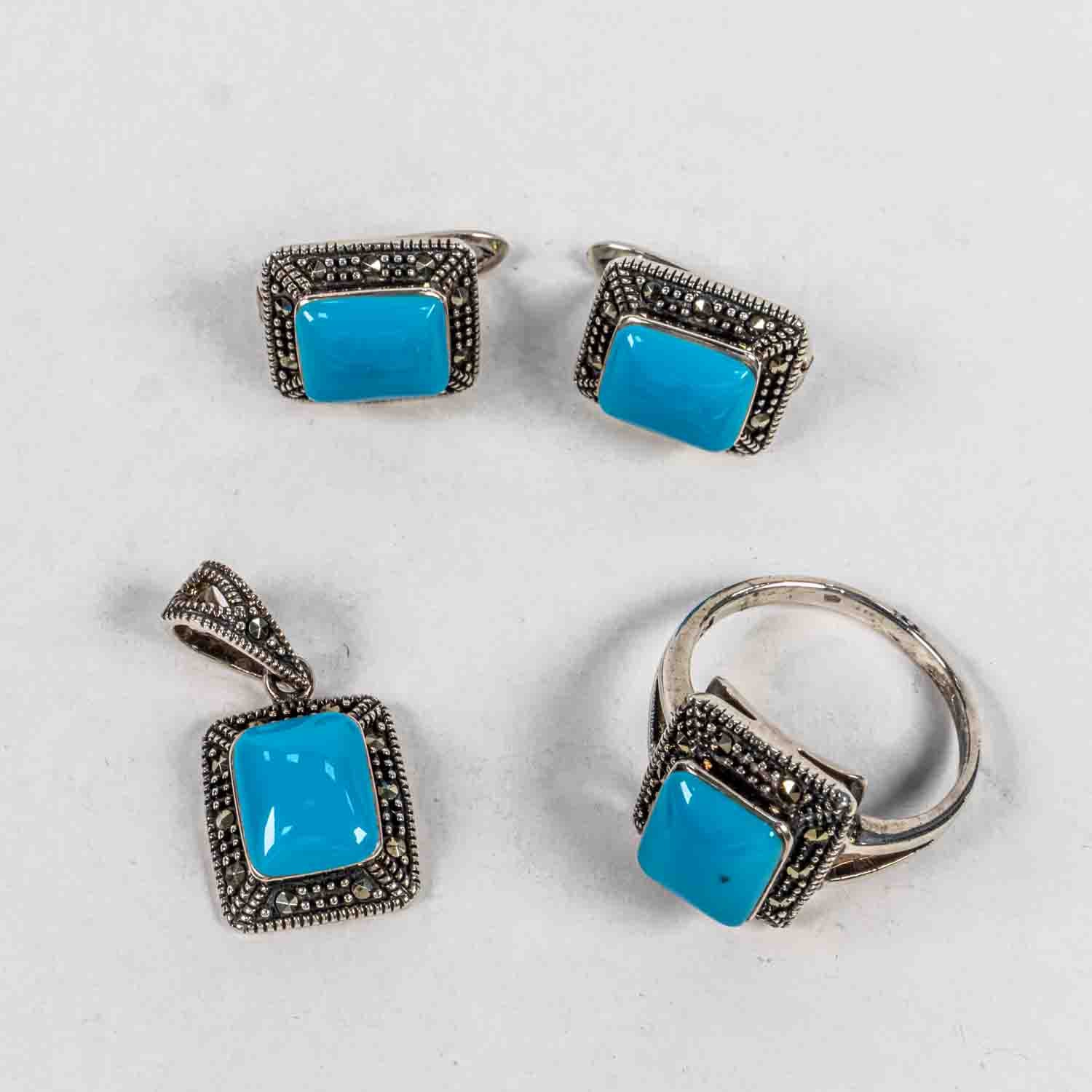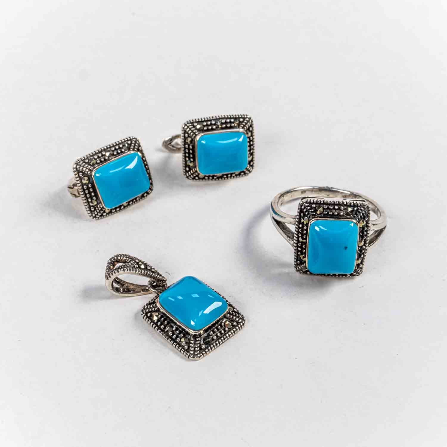 Descopera Set Bijuterii STILL Argint 925 - Pandantiv, Inel, Cercei, Turcoaz si Marcasite, Marime Inel 9, Albastru, un set de bijuterii din Argint 925 compus din pandantiv, cercei si inel, decorat cu Turcoaz si Marcasite, , disponibil la marimea 9 in nuante , Albastru, perfect pentru a adauga eleganta oricarei tinute.