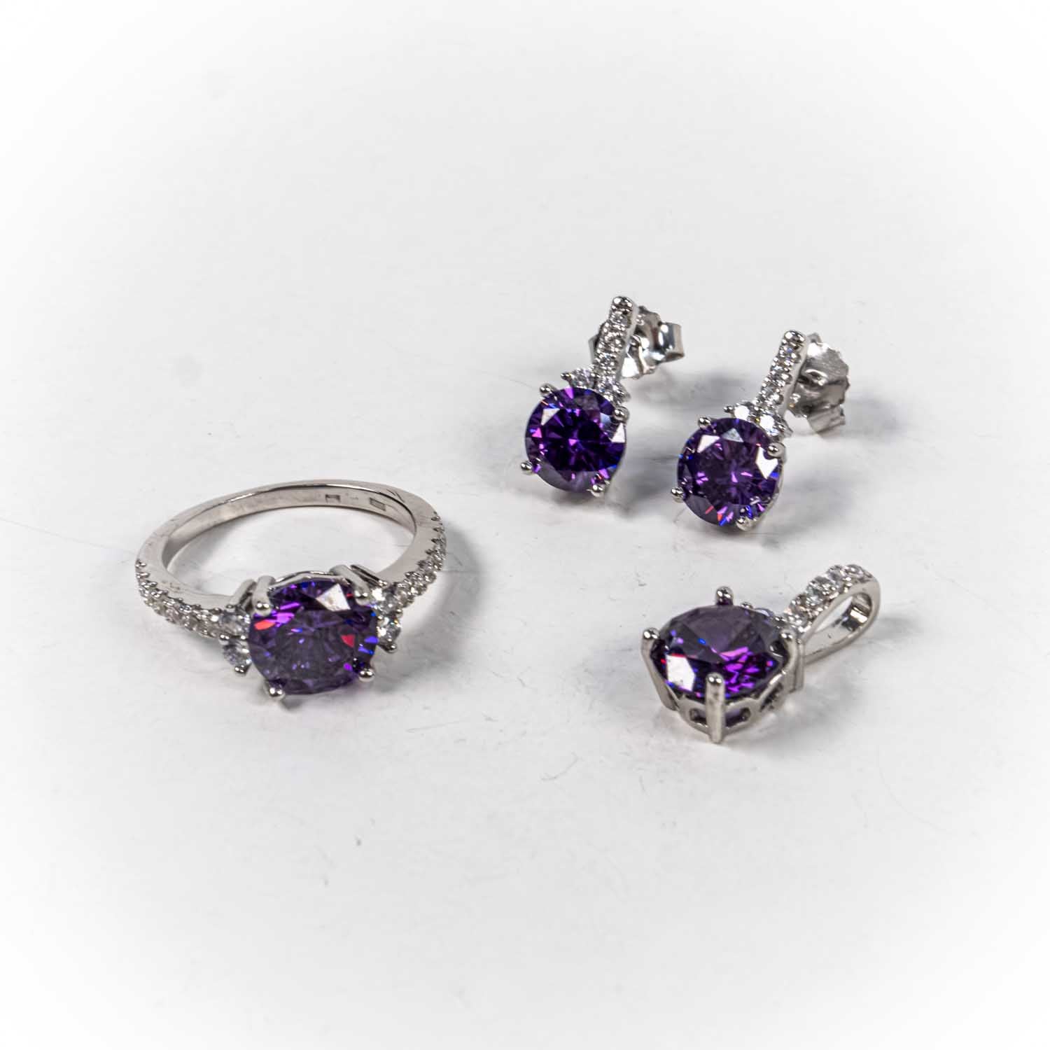 Descopera Set Bijuterii STILL Argint 925 - Pandantiv, Inel, Cercei, Zirconia, Marime Inel 8, Violet, un set de bijuterii din Argint 925 compus din pandantiv, cercei si inel, decorat cu Zirconia, , disponibil la marimea 8 in nuante , Violet, perfect pentru a adauga eleganta oricarei tinute.